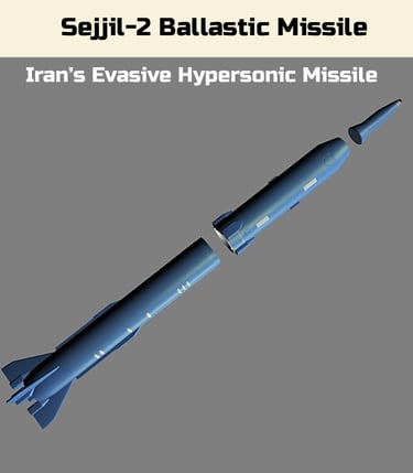Iran's Sejjil-2 is a two-stage, solid-fuel, medium-range, evasive hypersonic ballistic missile with an estimated range of about 1,240 miles.
